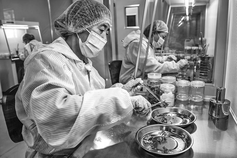 近年来,澄城樱桃试验站通过和北京市林业果树科学研究院合作,引进筛选出一大批适宜澄城县种植的樱桃新品种。试验站集优质樱桃品种培育、鲜果生产、技术服务、技术培训、电商销售和樱桃产品深加工于一体,为该县打造优质樱桃生产区提供有力的技术支撑。图为澄城樱桃试验站工作人员正在检查筛选培育中的樱桃苗。