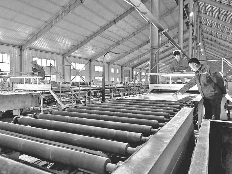 位于澄城县的陕西拓日新能源科技有限公司作为集研发、生产、销售光伏玻璃、光伏组件、光伏支架、光伏设备,建设大型光伏电站、电力施工和机电设备安装工程等为一体的国家级高新技术企业,今年1至9月产值44526.9万元,营业收入72124.36万元,实现出口销售额29627.34万元。图为在生产车间,工作人员正在查验光伏玻璃。郭艳 摄