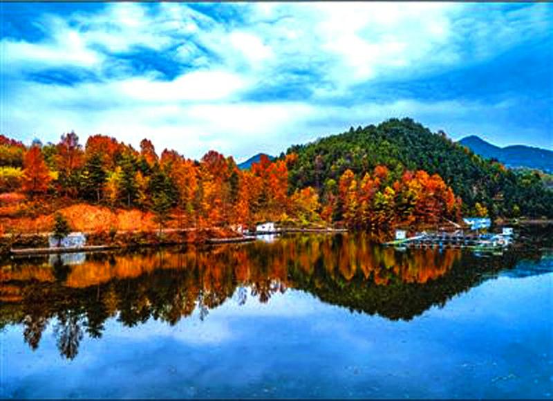 近年来,陕西省洛南县探索生态产业发展、生态环境治理新办法,加大资金投入,完善生态保护基础设施,坚持绿水青山就是金山银山理念,探索实现人与自然和谐发展的路径。图为近日,秋色中的洛南县抚龙湖。史家民 摄
