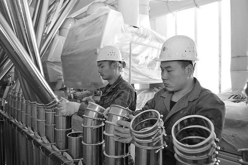 近日,在渭南经开区日处理4000吨小麦加工项目建设现场,工人们正在安装设备。该项目是省、市级重点项目,由中国制造业500强、中国食品工业百强企业的五得利面粉集团有限公司投资建设,计划投资4.95亿元,预计明年3月投产。项目采用目前世界先进的全自动、长粉路、全封闭新工艺,投产后可年加工小麦130万吨,年生产各类面粉98万吨,预计年销售额30亿元。 马辛 摄