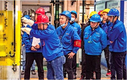 近日,陕汽控股冲压工技能大赛实操比赛在车身厂冲压车间进行,旨在以赛促学、以赛促练、以赛促干,激励大家争当好工匠。图为选手参加冲压工技能大赛实操比赛。袁景智 摄