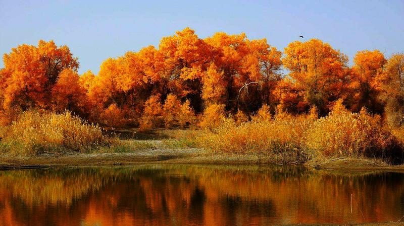 11月9日,在新疆沙雅县哈德墩镇大桥两侧的原始胡杨身披“金甲”,桥下塔里木河由东向西蜿蜒流淌,风景如画。这里每年都会吸引众多游客前来打卡观赏,也直接带动了当地农牧民增收。刘亚雄 摄