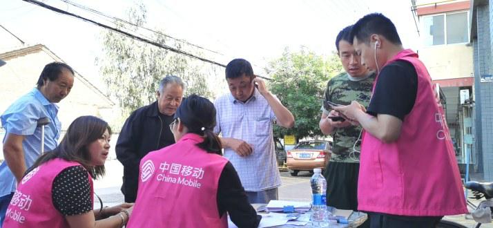 陕西移动县区分公司员工深入网格服务社区开展营销服务活动。