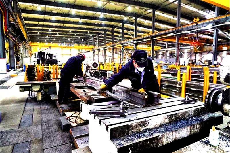 近日,工人正在宝鸡轨道交通产业基地——中铁宝桥重载高锰钢辙叉项目上作业。该项目是中铁宝桥集团转型升级重点工程,主要研发制造铁路用各种规格型号的高锰钢辙叉产品。田若楠 摄