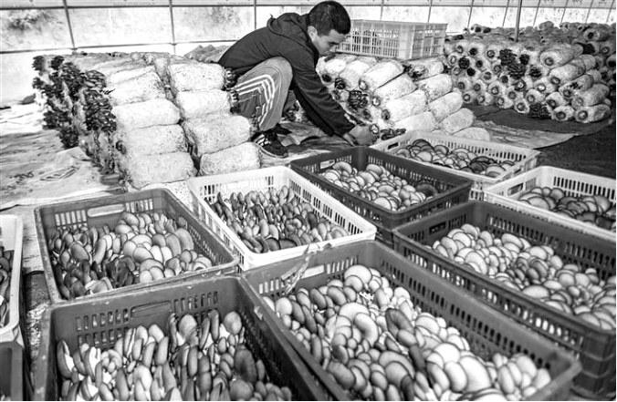 近日,西安市临潼区穆寨街道业池村的食用菌大棚内,23岁的返乡大学生刘海滨忙着采摘平菇,并装车运回冷库,随后送至厂家。这天他共采摘400公斤平菇,可获1000多元收入。今年初,他在帮扶单位西安浐灞生态区管委会支持下,租赁业池村股份经济合作联社4个大棚种植平菇,并按照收成的15%交给合作联社。他还聘用多名贫困群众,助力乡亲脱贫增收。