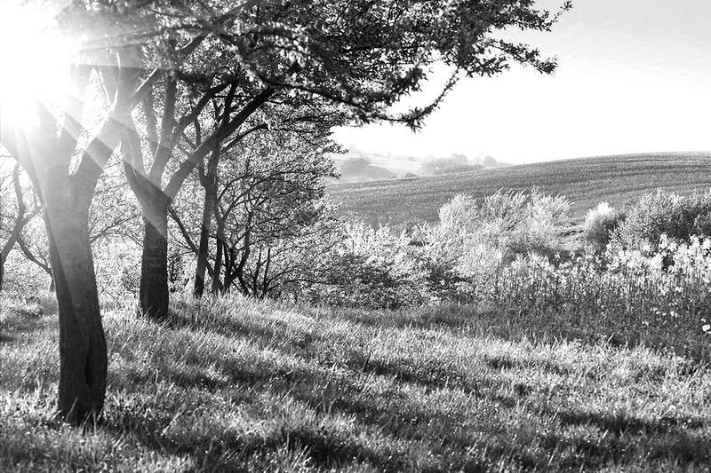 山房门口成群的彩色蝴蝶在金色的阳光下翩翩起舞,让人心旷神怡。推开庭院门树木葱茏,枝繁叶茂,鸟语花香,却没看见谢老师。他的妻子马姐指着山房门对面的竹林对我说,谢老师可能在那呢。怀着好奇,我拾级而上一个被翠竹掩映的土坡,眼前浮现一片绿意盎然的菜园子。远远就看见身着白色棉麻布衣裤的谢老师,他手里拿着一根藤条正与几只芦花鸡和两只大白鹅耍逗。进退腾挪间惹得鸡飞鹅跳,谢老师的脸随之笑成了一朵花。阳光穿过细密的树叶缝隙,洒到他身上变成了不规则的轻轻摇曳的光晕。那一刻,他开心得仿佛一个孩子。