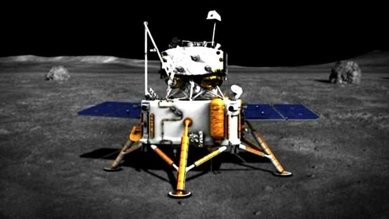嫦娥五号在月面上的情形(艺术图) 12月1日23时许,嫦娥五号探测器成功着陆于预先选定的月球表面区域,“五妹”成功“打卡”月球,标志着我国科学探测器第三次成功软着陆于月球表面。在这次技术含量极高的科学“打卡”中,西安分院为嫦娥五号探测器研制的微波测距测速敏感器、测控天线、数传子系统是“五妹”轻盈落月的关键。