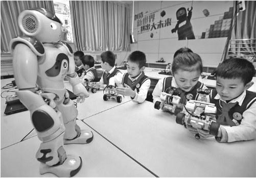 西安交通大学附属小学以人工智能教育为依托,采用多种举措培养学生创新能力。该校先后建立了乐高机器人教室、创客工坊、3D打印实验室、VR/AR教室、STEAM教室。人工智能活动空间,智能感知技术、学习分析技术、情感计算技术等丰富多彩的科技教学内容,激发了学生对科学的兴趣。聪明可爱的机器人让孩子们对电子科技产生浓厚兴趣。戴吉坤 摄
