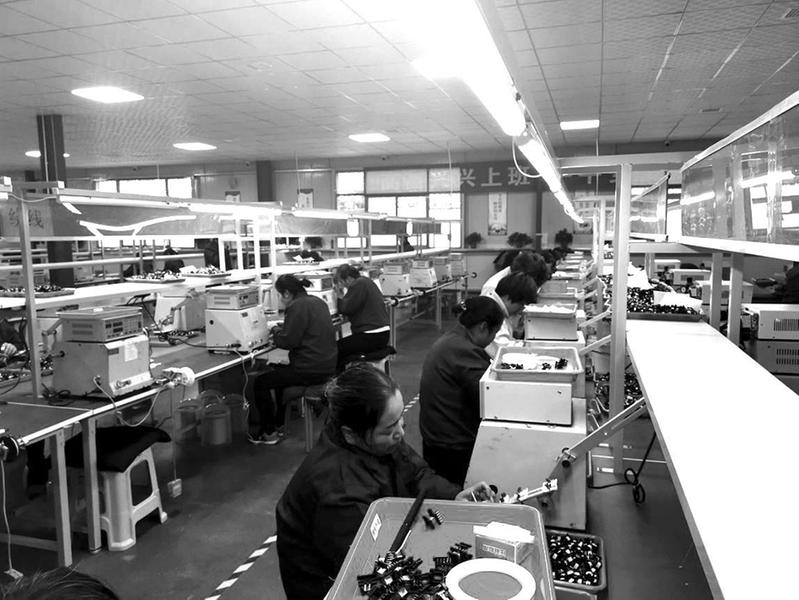 12月3日,广袤的眉坞大地早已是一幅冬日景象,但是在横渠镇的宝鸡永嘉源电子科技公司的生产车间内,却是一幅热闹景象。几十名工人穿着整齐的工作服,在工作台前紧张而认真地忙碌着。