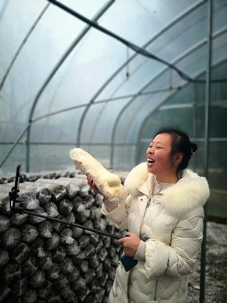 这样的大棚,在彭慧玲的家庭农场一共有90多个,每一间都是她的直播间。方寸屏幕里蕴含着巨大的市场,通过她的直播,全国各地的经销商和顾客真实地看到猴头菇、香菇、木耳、金耳、夏菇等多种食用菌的生长过程和品质管控。她说,生产旺季时,每天的产量都在2000多斤,其中平台订单占了一大半,年净利润保守估算也有上百万元,“猴头菇西施”的美誉也由此闻名遐迩。在她的带动下,30余户贫困户加入到她的农场中,每年户均增收3000余元。