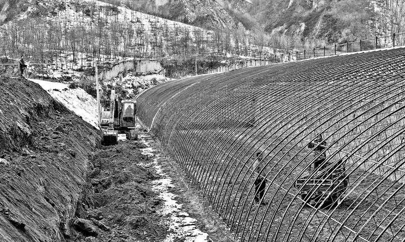 近日,在甘泉县石门镇封家湾村现代农业园区温室项目现场,一根根镀锌管经过焊接固定,搭建成了一座座日光温室大棚。据了解,封家湾村辖内有6个村民小组,村民390户1039人,现有大拱棚66座,日光温棚15座,2019年人均纯收入9290元。今年新建现代农业节能日光温室大棚32座,大棚建成后,农户户均可增收1200元。邓志宏 摄