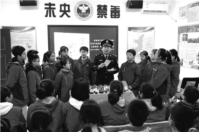 今年秋冬季,西安市未央区禁毒办面向辖区中学开展禁毒教育系列活动,通过播放宣传片、实地讲解毒品种类等方式,让学生们认识到毒品的严重危害性,促使其自觉拒绝毒品、远离毒品。图为未央区禁毒办副主任肖彬为西安市第七十五中学初一学生讲解识别新型毒品的方法。母家亮 摄