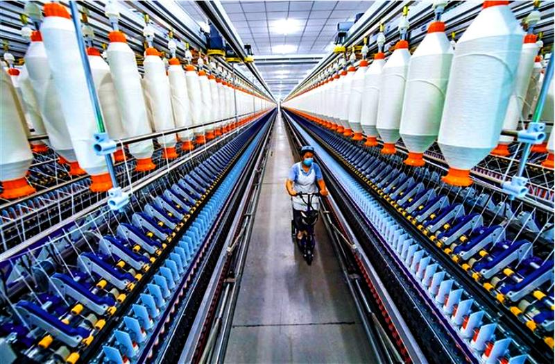 12月16日,在宝鸡市眉县常兴纺织工业园区陕西帛宇纺织有限公司,纺织工人骑着电动三轮车,穿行于正在试产的细纺车间智能化生产线。该企业引进具有国际先进水平的纺织设备,建成高效产能智能化生产线,对从订单下达到产品完成的整个生产过程进行数字化管理。预计2021年达产达效后,公司年产值达10亿元。袁景智 摄
