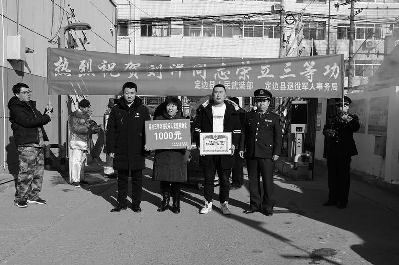近年来,定边县向部队输送了大批优秀青年,他们不辜负地方政府、群众的厚望,在部队尽心服役,保家卫国、默默奉献,涌现出了一批批立功受奖的优秀士兵。据悉,自2016年以来,定边县共有41名现役军人在部队荣立三等功。图为定边县人武部和县退役军人事务局为现役立功受奖军人家庭送去立功喜报和1000元慰问金。