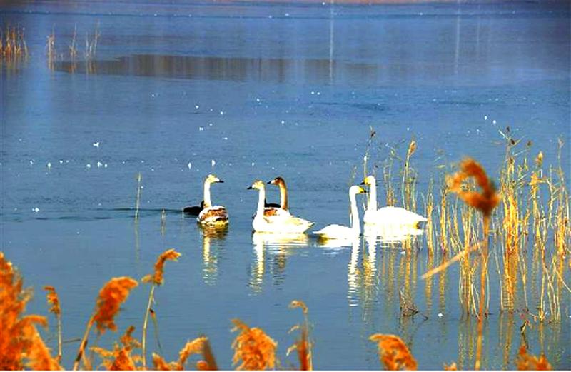 近日,华山脚下的太华湖湿地迎来百余只美丽的天鹅。此外,白鹭、苍鹭等十余种鸟类在此栖居,呈现出人与自然和谐相处的美好景象。穆骋 摄