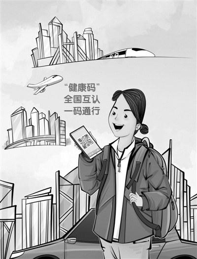 针对不同地区不同“健康码”可能给出行带来的不便,有关部门发布《关于深入推进“互联网+医疗健康”“五个一”服务行动的通知》,明确跨地区流动人员“健康码”信息在各地区可信可用,实现防疫“健康码”统一政策、统一标准、全国互认、一码通行,为人员出行提供方便。这正是: