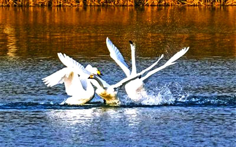 入冬以来,为保障候鸟平安迁徙、越冬,各地采取了多种保护措施。不少地方出现候鸟嬉戏觅食,与冰湖、湿地相互映衬的动人画面。图为陕西华阴市,白天鹅在太华湖湿地嬉戏。龚仕建 石超奇 摄