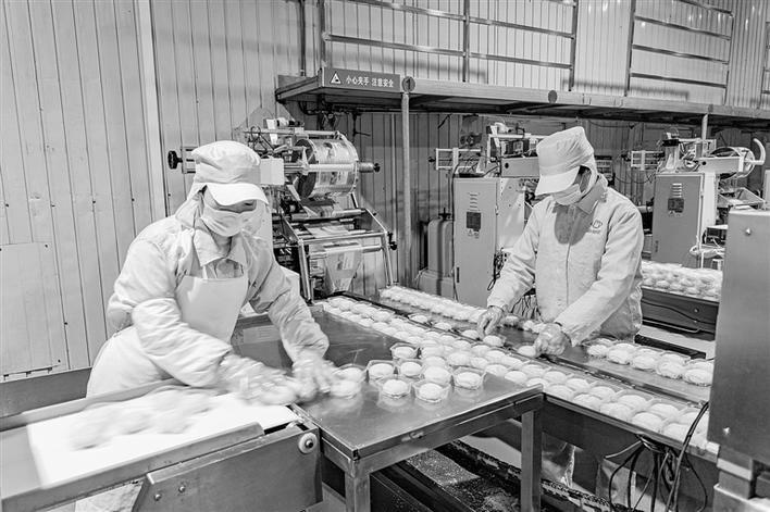 春节临近,咸阳市各食品生产企业纷纷开足马力,为即将到来的消费热潮积极准备。图为礼泉县一食品生产车间,工作人员包装产品。 赵天瑞 摄