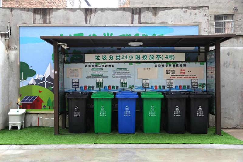 除三座定时定点垃圾分类投放亭外,特设置一座24小时垃圾分类投放亭,着力解决居民群众上班时间与定时定点投放时间不同,以及错过定时定点投放时间的现象。每座垃圾分类投放亭照明灯及洗手池,便于居民投放使用,也使垃圾分类充满温度。