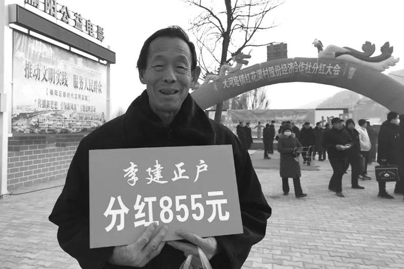 “我入(股)了7亩地,今天分到了850多元,非常高兴。”大河塔镇红花渠村村民李建正说。