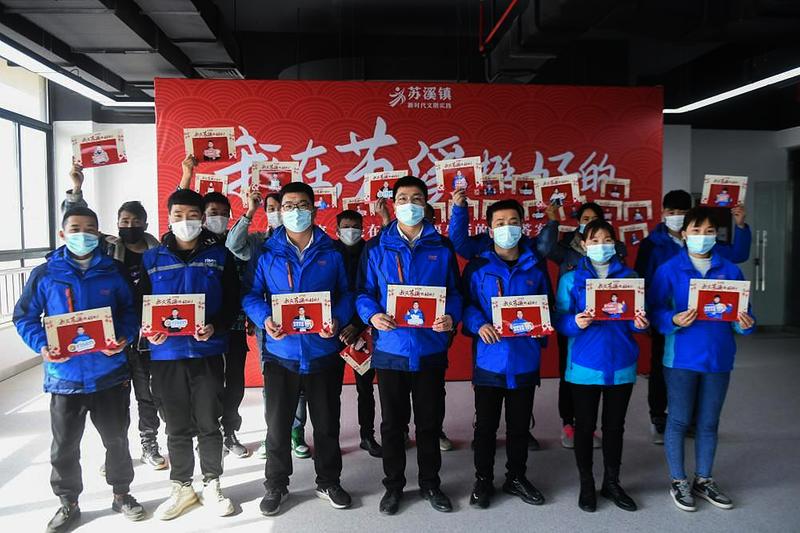 1月19日,在浙江省义乌市苏溪镇一家新能源公司内,留下过年的员工拿着自己的照片拍合影,随后将把照片寄给家人。苏溪镇是工业重镇,共有4600多家企业、10多万外来务工人员。近期,苏溪镇政府等部门联合当地企业,共同推出“留在浙江过大年笑脸家书寄温情”活动,免费为留在当地过年的外地员工拍摄笑脸照片,制作成特别的家书,与手写明信片和过年礼包一起寄回老家,传递温情。徐昱 摄 继29省份倡议“就地过年”后,人力资源和社会保障部等7部门近日印发通知,将于1月21日至3月底在全国开展“迎新春送温暖、稳岗留工”专项行动,鼓励引导农民工等务工人员春节期间安心留在就业地。