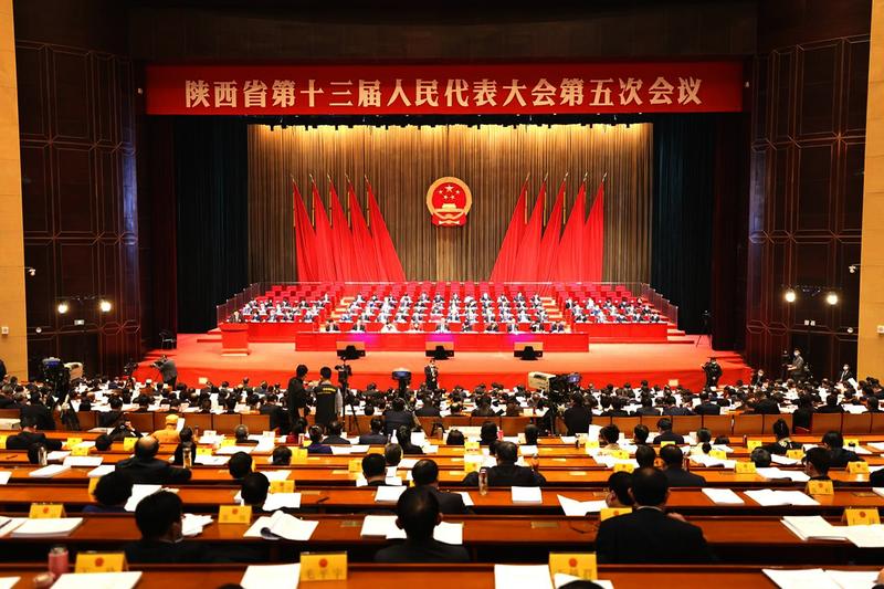 9时整,主持会议的刘国中宣布:陕西省第十三届人民代表大会第五次会议开幕。全体起立,奏唱国歌。