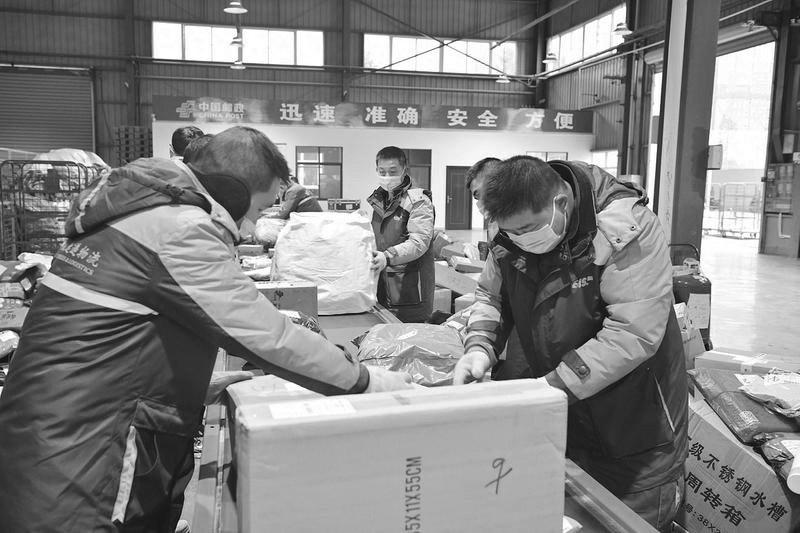 1月25日,城固县物流快递仓储分拣中心的工作人员正分拣快递。该县整合邮政、百世、申通、中通和韵达五家快递公司,去年10月建成县级物流快递仓储分拣中心,通过统仓共配、中转运输、联合运营等方式整合社会物流快递资源,降低物流运行成本,提高服务效率,助力县域商贸经济发展。目前该中心月均到件量110万件,发件量15万件。 李琨 摄