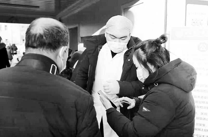 他耐心细致又坚持原则,许多老年人来医院就诊,不懂什么是绿码,他就一遍又一遍给老人讲解如何操作——打开哪个程序,从哪里扫一扫,怎样取得绿码。有些患者体温稍有异常,哪怕只是高了0.1℃,他都会反复测量、再三确认,避免出现纰漏。