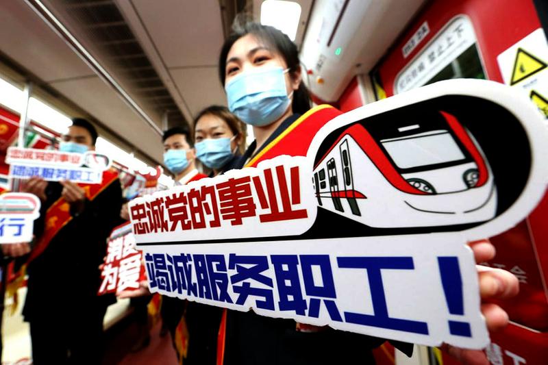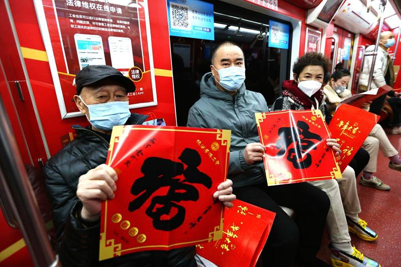 1月29日上午9时40分,装扮一新的陕西“工会服务号”从西安地铁2号线渭河车辆检修库开出……