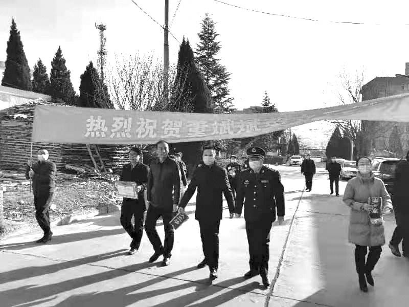 疫情防控要抓紧,军人立功喜报不能误。1月28日一大早,铜川市耀州区董家河镇,锣鼓喧天,鞭炮齐鸣。村民们争相跑出家门看热闹,拍照留念。
