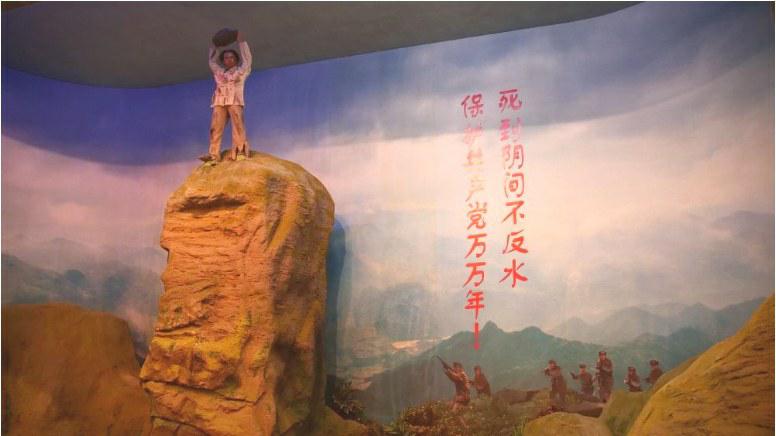 兴国革命烈士纪念馆展示厅内,江善忠烈士跳崖时的雕像。黄和逊 摄 “21岁时,你在做什么?”