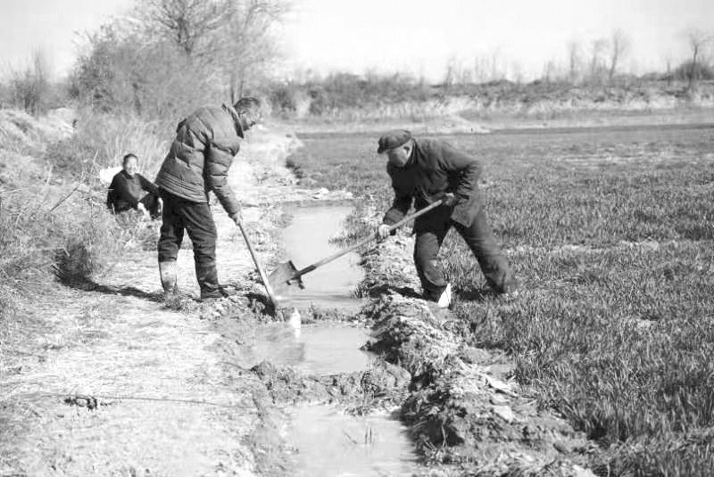 2月20日,在马嵬街道东街村,57岁的孟党案正在和家人给小麦浇水,他家今年有2亩小麦,现在条件好了,浇地很方便,这返青水一浇,粮食丰收就有保障了,期待今年小麦有个好收成。