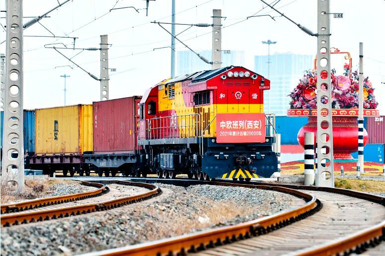 2月22日,满载着果汁、塑料制品、生活用品等50车货物的X9041次中欧班列(西安),从西安局集团公司新筑车站驶出开往霍尔果斯,标志着2021年中欧班列(西安)运输数量突破2万车大关,达到20011车,同比增长52.3%,比2020年突破2万车提前了22天。