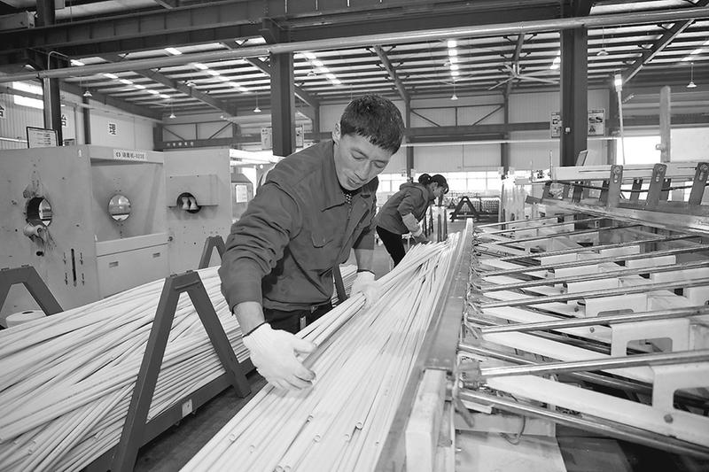 今年以来,日丰企业(陕西)有限公司产值同比增长40%,3月销售及出货量持续增长,预计一季度产值将达到8000万元。目前企业三期项目正在建设中,计划投资3.8亿元,预计今年内可投产使用,投产后年产值将达到10亿元。图为在渭南经开区日丰企业(陕西)有限公司生产车间,工人们正在加紧生产,赶制订单。