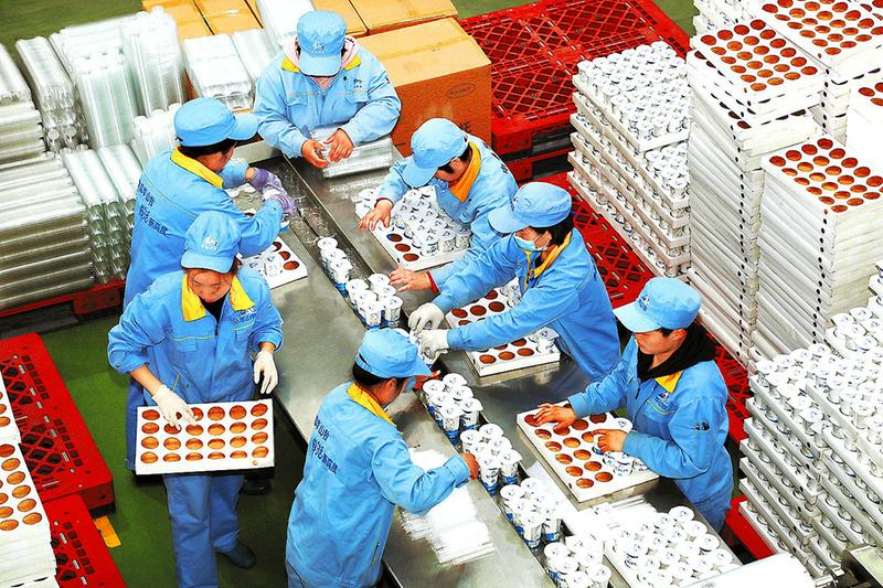 据了解,中垦华山牧乳业有限公司2020年产值3亿元。为实现2021年产能倍增计划,该公司计划投资3000万元进行技术改造,主要用于生产低温酸奶产品,将于今年年底建成投用,建成后产品加工处理量将达到5~6万吨/年,产值约5亿元。图为渭南经开区中垦华山牧乳业有限公司工人在生产线工作。该项目主要生产冷储白奶(巴氏奶)、酸奶、常温高端白奶等产品。