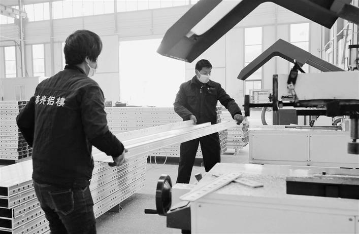 咸阳市持续强化工业政策供给,在优化布局、壮大支柱、提升效益上下功夫,推动企业创新发展。图为武功县泰兴铝模生产车间工人在加紧生产。