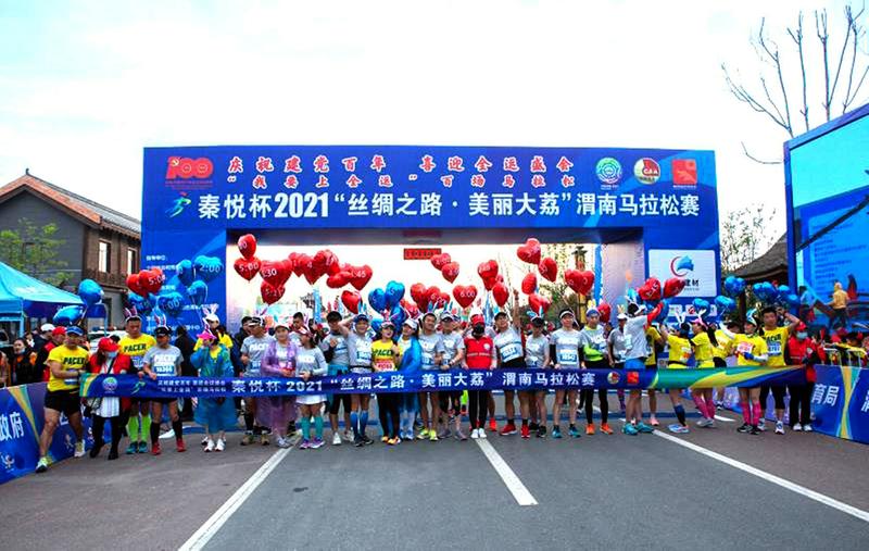 盛世新时代、激情展风采。4月10日上午,“我要上全运”百场马拉松秦悦杯2021“丝绸之路·美丽大荔”渭南马拉松赛在风景秀丽的同州湖畔鸣枪开赛。