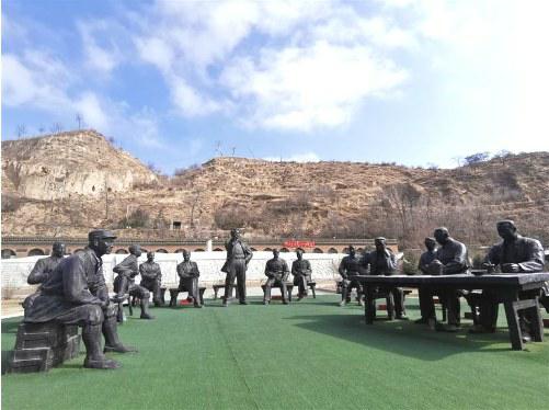 会议旧址上的伟人雕像。程刚摄 车子绕过一道道沟,在一个拐弯处,小河会议旧址就映入眼帘。
