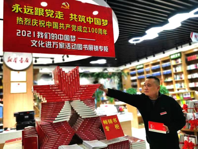 与韩周利的攀谈中,记者了解到他是范家寨镇董家河人,最近在宝鸡市区一建筑工地上班,由于天雨工地放假,他一回凤翔就来到书店看书,在营业员王玺的介绍下,看得津津有味。据王玺介绍,截至目前,凤翔区新华书店4家分店共计销售《论中国共产党历史》《中国共产党简史》《习近平新时代中国特色社会主义思想学习问答》等红色书籍3.2万余本。