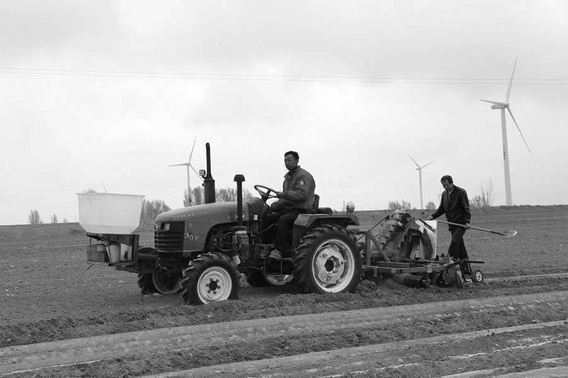 4月21日,定边县千亩渗水地膜谷子在砖井镇牛长渠村开机播种。