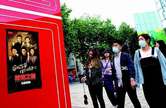 设在上海市渔阳里广场的“时光之镜”建党百年沉浸式互动体验亭吸引众多年轻人体验(5月4日摄)。“五一”期间,位于上海的中共一大会址、中共二大会址以及增加了多媒体展览内容的共青团中央机关旧址纪念馆等红色地标,吸引众多游客前来“打卡”。陈飞摄