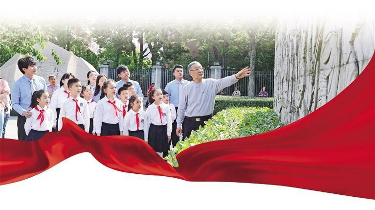 5月1日,中建二局华东公司的青年建设者和受邀前来的小学生们聆听关于工人革命历史的介绍。当日,青少年代表们在上海总工会旧址——湖州会馆旁的纪念公园内演唱励志歌曲,展示新时代青少年新面貌,感受“五四”精神。方喆摄 “我刚刚买了十多张明信片,准备和其他红色文创产品一起寄给各地的朋友,一起纪念今年这个特殊的年份。”“五一”假期的第一天,杭州在校大学生王硕康与同学来到嘉兴南湖,打卡“红色之旅”。