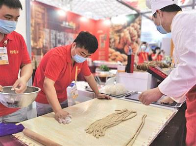 天津馆现场制作非遗麻花。