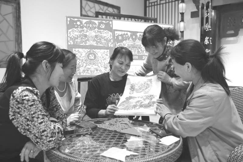 5月10日,在千阳县创业大厦刺绣产业园,人头攒动、喜气洋洋,游客争相观看、不断拍照,千阳县“红色剪纸映党史初心不忘颂党恩”红色文化传承展示活动正在进行。