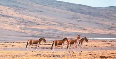 团员在冬格措纳湖拍到成群的藏野驴。
