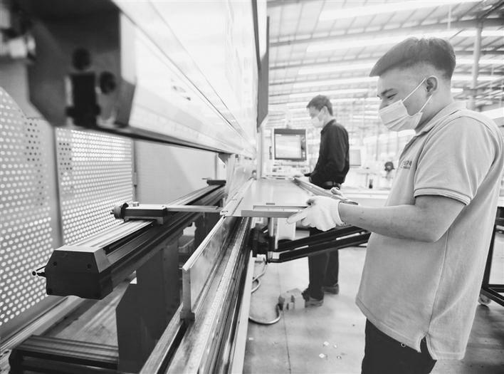 近年来,咸阳市积极引进带动能力强、投资强度大、产业关联度高的项目,使一批技术含量高、市场竞争优势强的项目相继建成投产,有效促进全市经济发展。图为该市重点项目之一惠齐电力生产车间工人正在作业。 王晓田 摄