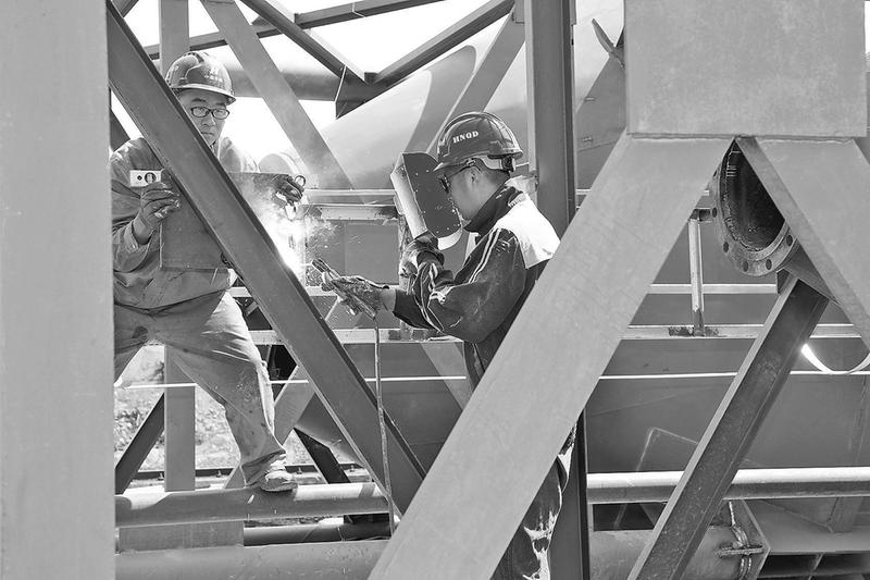 近日,华阴市陕西久泰合嘉建材有限公司项目工地,工人正在进行焊接作业。