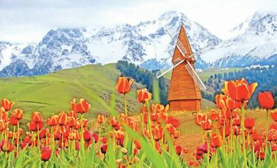 位于天山脚下的新疆奇台县江布拉克景区里,盛开的郁金香和雪山、草原、松林等相映成景,吸引游人前来观赏。蔡增乐 摄 休闲度假产业成为承接出境游消费回流的“主力军”,城市休闲和乡村度假成为满足城乡居民旅游需求的“压舱石”。