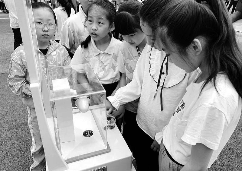 活动现场,除了声、光、电、力、磁等自然科学原理,和集科学性、趣味性、参与性于一体的各类基础科学展品外,志愿讲解员还为孩子们带来了仿人机器人、球幕影院、无人机等前沿科技科普展品,让学生在娱乐中受到科学熏陶,培养科学兴趣。