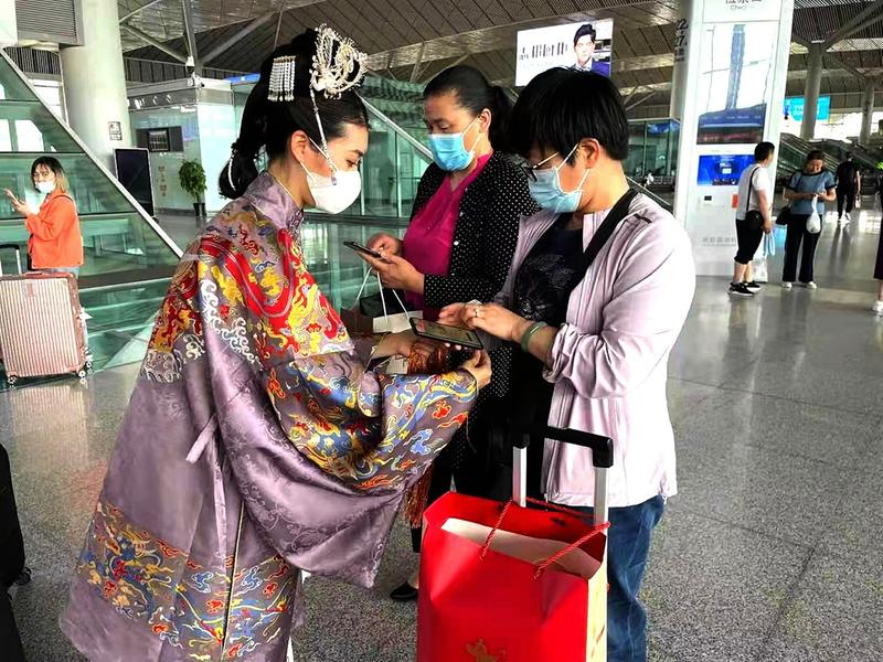 西安火车站候车室里,随着音乐声响起,身着传统汉服的工作人员跳起来传统舞蹈《竹枝词》,候车旅客纷纷驻足观看。“五月五,是端阳;插艾叶,挂香囊;五彩线,手腕绑;吃粽子,沾白糖;龙舟下水喜洋洋。”候车室里身着汉服的工作人员边念童谣边为萌萌小朋友身上挂上了香囊,绑上了五彩线。西安北站“馨动长安”服务台前,工作人员纷纷穿起汉服,为旅客指导着如何制作香囊。“制作艾叶香囊不仅能够让乘车旅客感受传统节日氛围,还可以为老人、儿童在旅行中防疫驱虫。”客运员邓一凡边说边向旅客递上香囊。